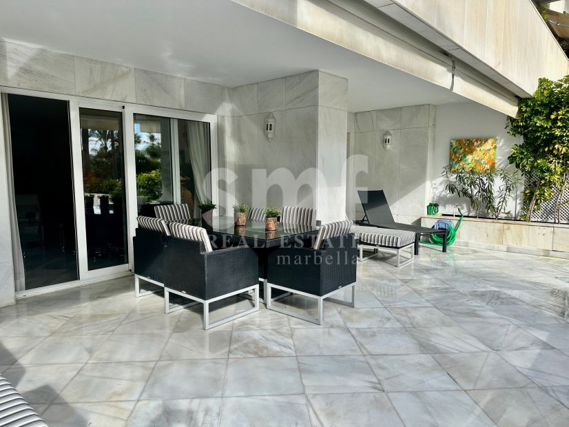 Ground floor apartment with private pool, located in one of the most prestigious residential complexes in Puerto Banús (Marbella), within the Los Granados development.