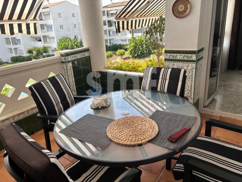 PRECIOSO APARTAMENTO UBICADO EN LA PRESTIGIOSA URBANIZACIÓN PLAYA ROCIO, EN PRIMERA LÍNEA DE MAR EN PLKENO, EL CENTRO DE PUERTO BANUS. EL APARTAMENTO, UBICADO EN EL JARDÍN DE LA URBANIZACIÓN, DISFRUTA DE VISTAS A LA PISCINA, JARDÍN Y MAR, Y TIENE ORIENTACIÓN SUR-OESTE, CON SOL EN LA TERRAZA POR LA TARDE.